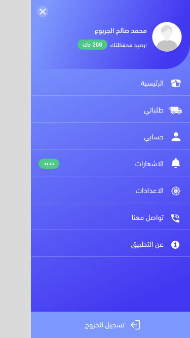 • سهولة الاستخدام: واجهة مستخدم بسيطة وسهلة التنقل تجعل من السهل على المستخدمين طلب خدمات التوصيل بسهولة ويسر.